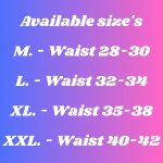 আপনার সাইজ সিলেক্ট করুন। *M (28-30)L (32-34)XL (35-38)XXL (40-42)